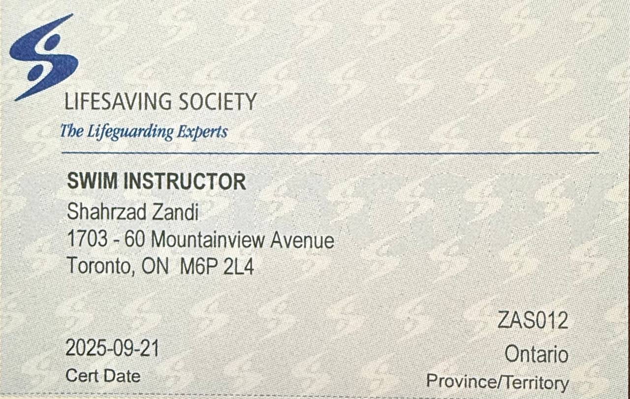 Shahrzad Zandi is a dedicated adult swim coach with years of hands-on experience helping swimmers of all levels, from complete beginners to advanced athletes. Certified in both adult swim instruction and aquatic therapy, Shahrzad brings a unique combination of technical expertise and compassionate guidance to every lesson.